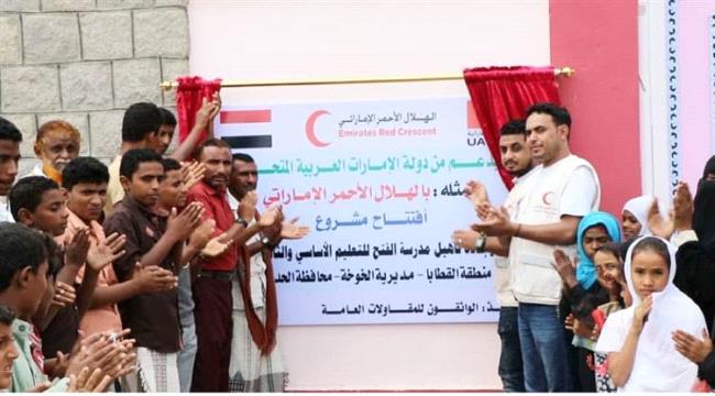 افتتحت هيئة الهلال الأحمر الإماراتي «مدرسة الفتح الأساسية والثانوية» في منطقة القطابا بمديرية الخوخة التابعة لمحافظة الحديدة، بعد إعادة ترميمها وتأهيلها وتأثيثها، وذلك في إطار اهتمامها بقطاع التعليم في مختلف مدن وقرى ومناطق الساحل الغربي.
