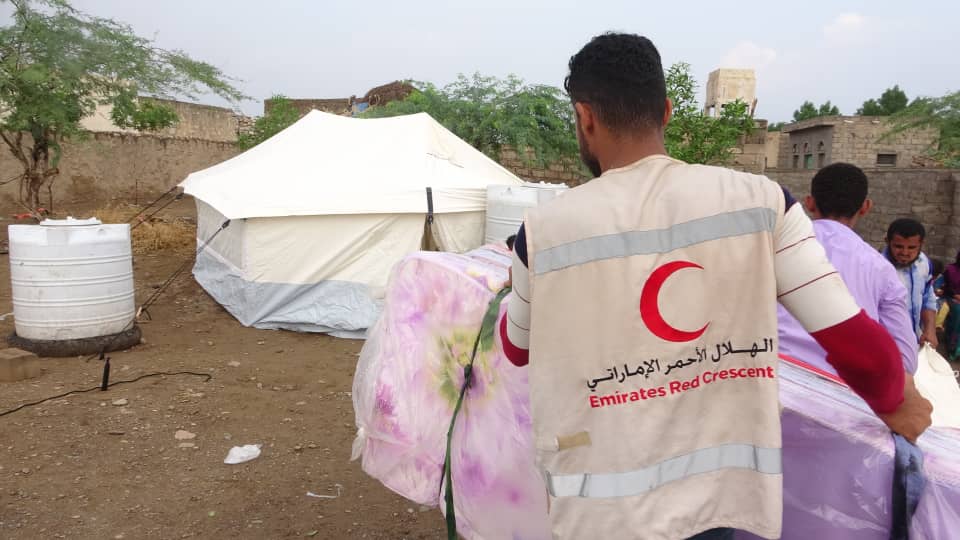 الهلال الأحمر الإماراتي يغيث مئات الأسر بمساكن طارئة في الساحل الغربي