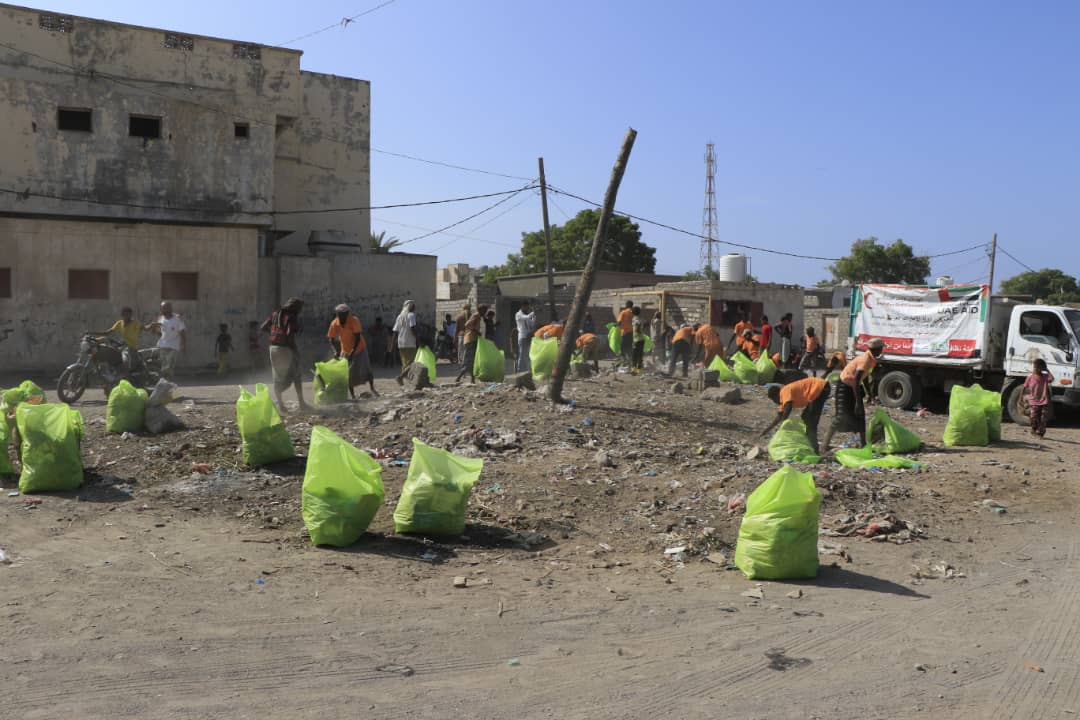 الهلال الأحمر الإماراتي يدشن حملة النظافة الشاملة في مدينة الخوخة بمحافظة الحديدة