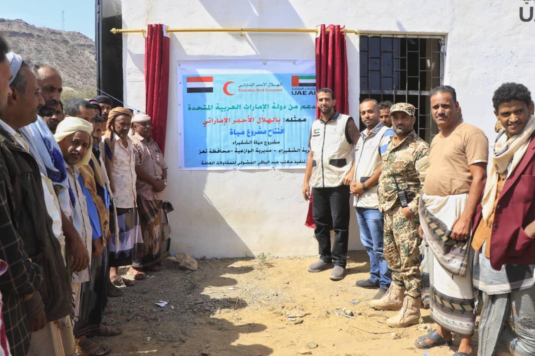 الهلال الأحمر الإماراتي يفتتح مشروع مياه الشقيراء الإستراتيجي في الوازعية بمحافظة تعز