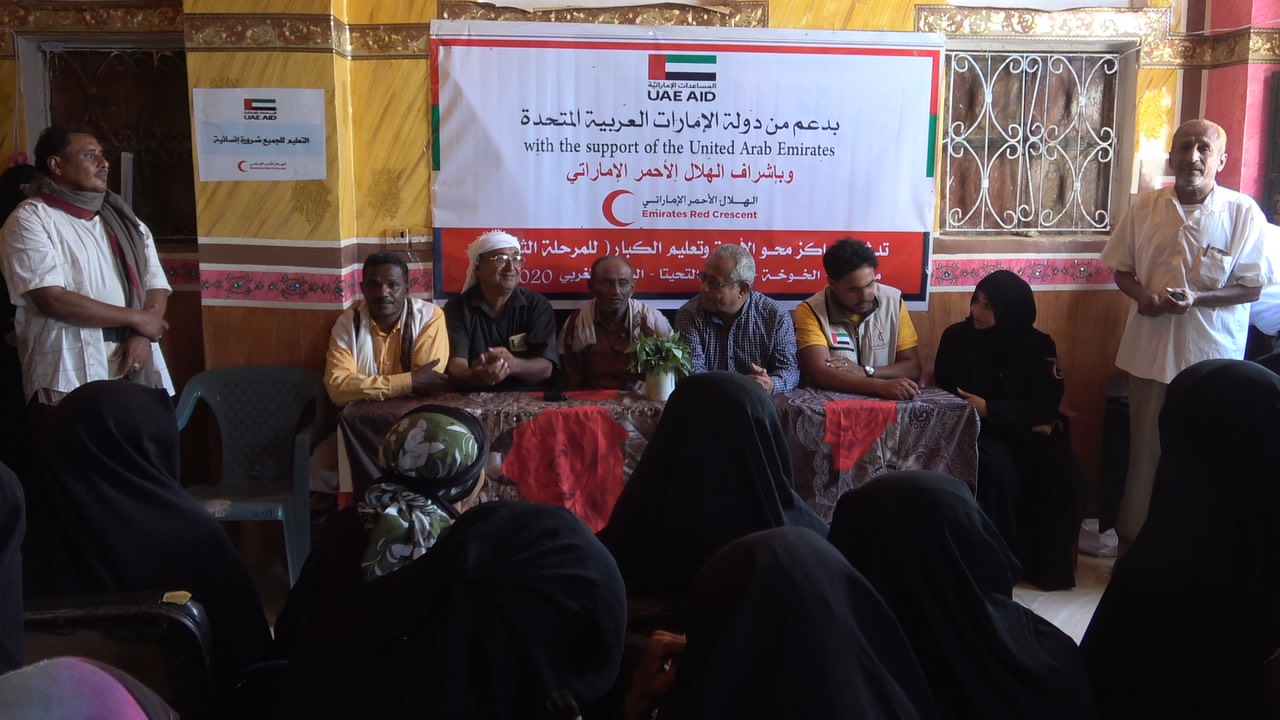 دشنت دولة الإمارات العربية المتحدة عبر ذراعها الإنسانية، هيئة الهلال الأحمر سبعة مراكز لمحو الأمية وتعليم الكبار في مديريات الخوخة وحيس والتحيتا، بحضور ممثلي السلطة المحلية وقيادة مكتب التربية بالساحل الغربي
