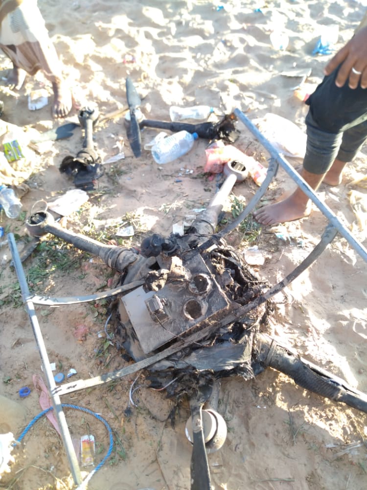 وتمكنت الدفاعات الجوية لألوية العمالقة من رصد الطائرة الحوثية المسيّرة تُحلِّق في سماء مديرية حريب وتحمل مقذوف هاون عيار 60، وأسقطتها بالسلاح المناسب.