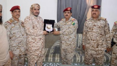 وزير الدفاع يقدم درع الوزارة لقائد قوات العمالقة الجنوبية المحرمي