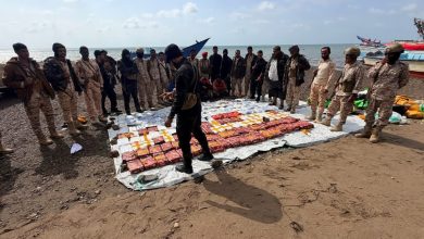 الحملة الأمنية لقوات العمالقة الجنوبية تضبط ربع طن من المخدرات على متن قارب في باب المندب